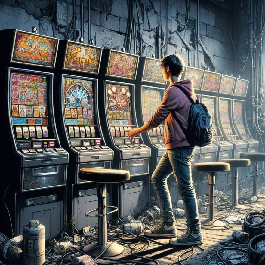 The door to the warehouse hung open, letting in harsh sunlight; drifting to cover up every shadow in the building and heating up the concrete from its usual soothing cold state. A sideways slot machine with a cracked screen flickered error messages erratically as it lay across the path to the entrance, creating an obstacle to leave. There was only one person inside the building, a teenager sat alone. He was surrounded by upright, working machines and quarters scattered around him. He held one bloodstained quarter in his hand, moving it around his deeply cut palm as if that would do anything except make the quarter dirtier and make his hand hurt more. It wasn’t a solution but he had no idea how to fix this.