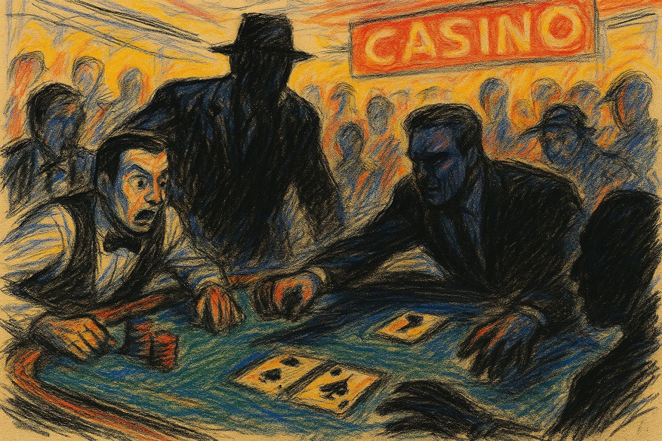 The gambler slumped in his chair. He was a short man, and the enormous stature of his companion made him look downright small in comparison. He suddenly straightened and pounded his fist on the table.